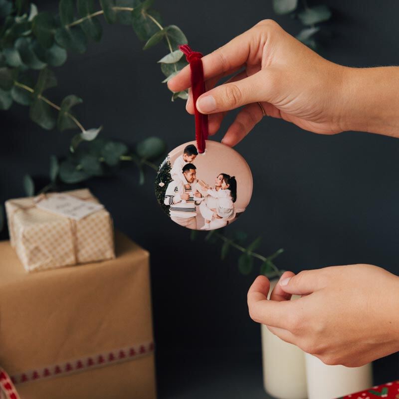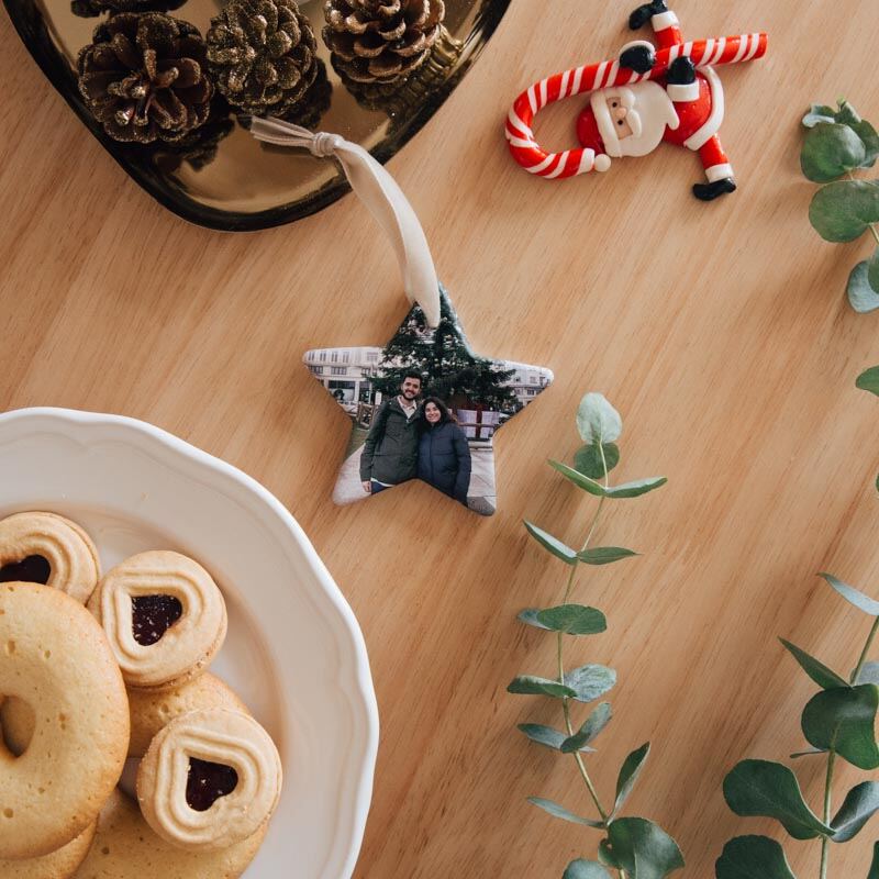 Nuestros adornos navideños personalizados se fabrican siguiendo un estándar de alta calidad y por eso se les somete a rigurosos controles de calidad a lo largo de todo el proceso de producción. Están hechos de cerámica sólida, con impresión directa de tus imágenes digitales en su superficie, dando un efecto brillante.