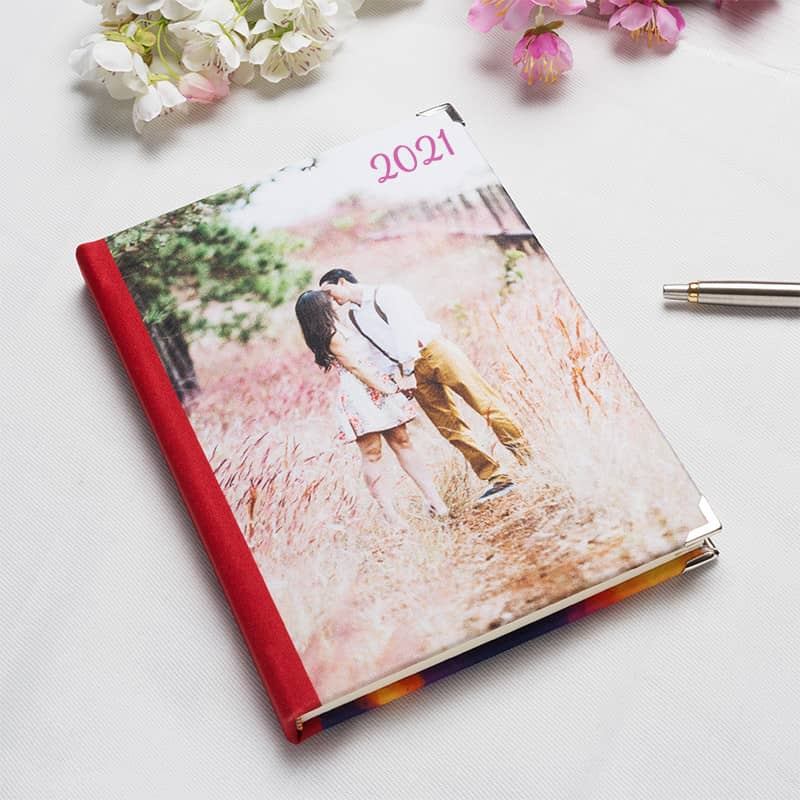 CONSEJO: Nuestra exclusiva agenda personalizada se realiza en lujosa tela satinada, por lo que recomendamos usar diseños con una sola imagen o poca cantidad de fotos si prefieres un collage. Y a poder ser usa diseños nítidos con detalles bien contrastados para que la imagen se imprima de manera nítida y con los detalles bien definidos.