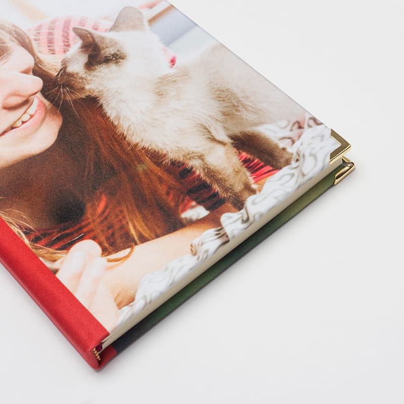 Realizada a mano por nuestro experto equipo de producción ensamblando sus hojas de marfil de 110 g/m2 de grosor, cuenta con una tapa dura recubierta de tela satén que le da un toque elegante y luminoso al diseño, además de un tacto muy suave. Para mantener la impresión como el primer día, las esquinas están protegidas con unos elegantes refuerzos de acero que permiten que el producto permanezca intacto a pesar de su uso frecuente.