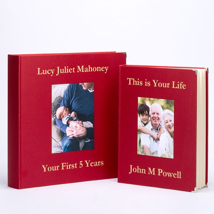 Dispones de varias opciones a elegir: 2 tamaños o formatos & 4 colores para las tapas del libro. Luego sube tus fotos, imágenes o diseños desde tu ordenador o directamente desde tus redes sociales como Facebook o Instagram, ¡y comienza a personalizar tu propio álbum! En la última parte del proceso puedes poner el título de tu álbum personalizado – por ejemplo, “Vida, obra y milagros de mi madre, (nombre)".