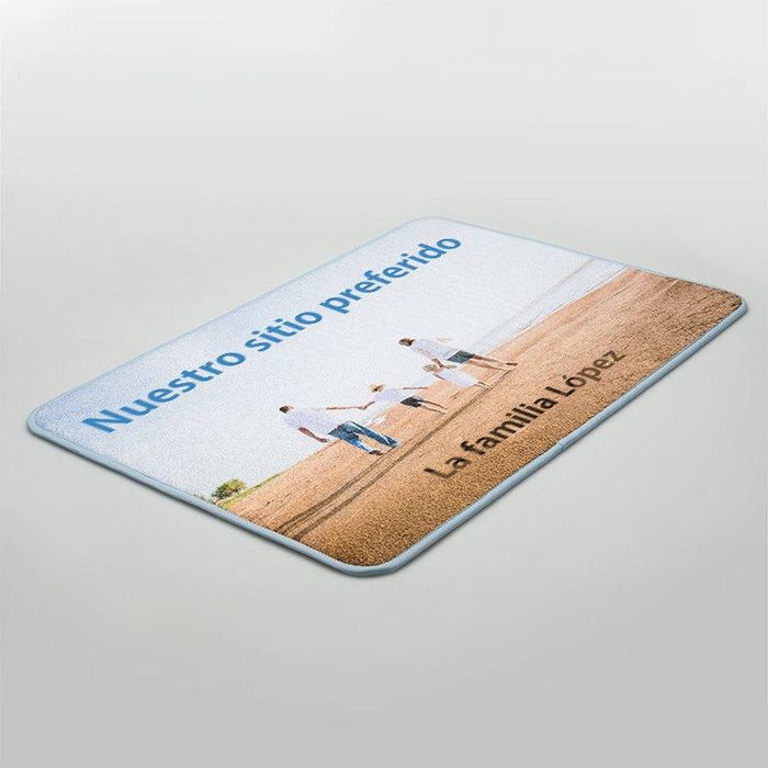 En nuestro editor online puedes subir fotografías familiares, ilustraciones o escribir un texto divertido para crear una alfombra de baño personalizable única. ¿Buscas inspiración? Diseña una alfombra de baño infantil personalizada con los dibujos de los peques, un modelo zen con tu nombre sobre un fondo de piedras o una alfombra de baño con texto personalizado para alegrar cada mañana. También puedes combinarla con cortinas de ducha o toallas a juego y convertir tu baño en un espacio coherente y lleno de carácter.