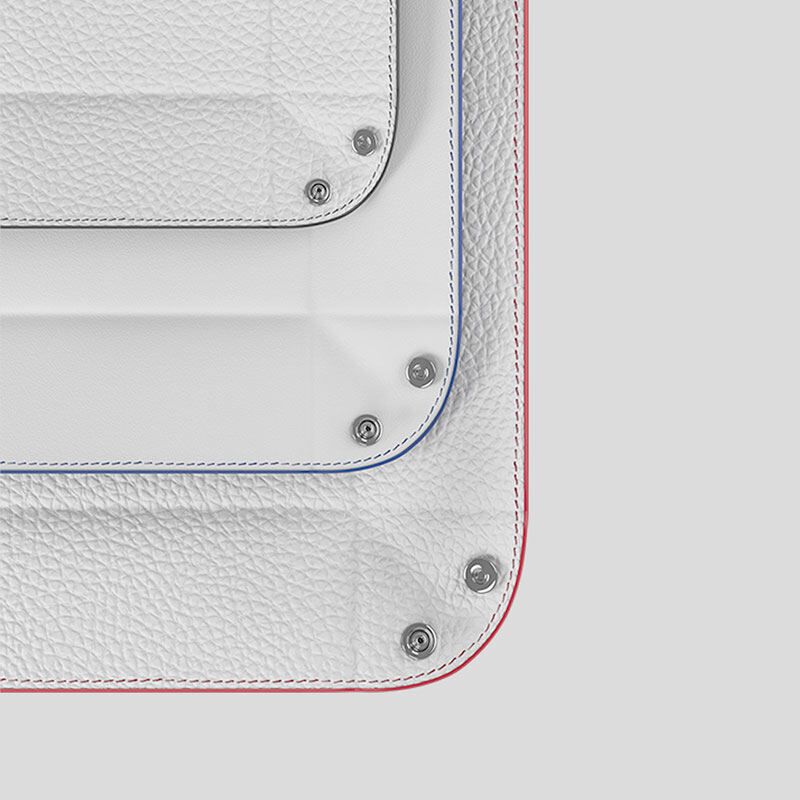 Gracias a nuestro cuero de Nappa, esta bandeja organizadora es diferente de las que puedas encontrar en las tiendas. Tanto el acabado liso o texturizado del cuero son opciones donde tu impresión se reproducirá a la perfección y será tan resistente como el cuero mismo. Fabricamos cada parte de tu bandeja organizadora de cuero a mano, para que el material permanezca impoluto a lo largo de todo el proceso.
