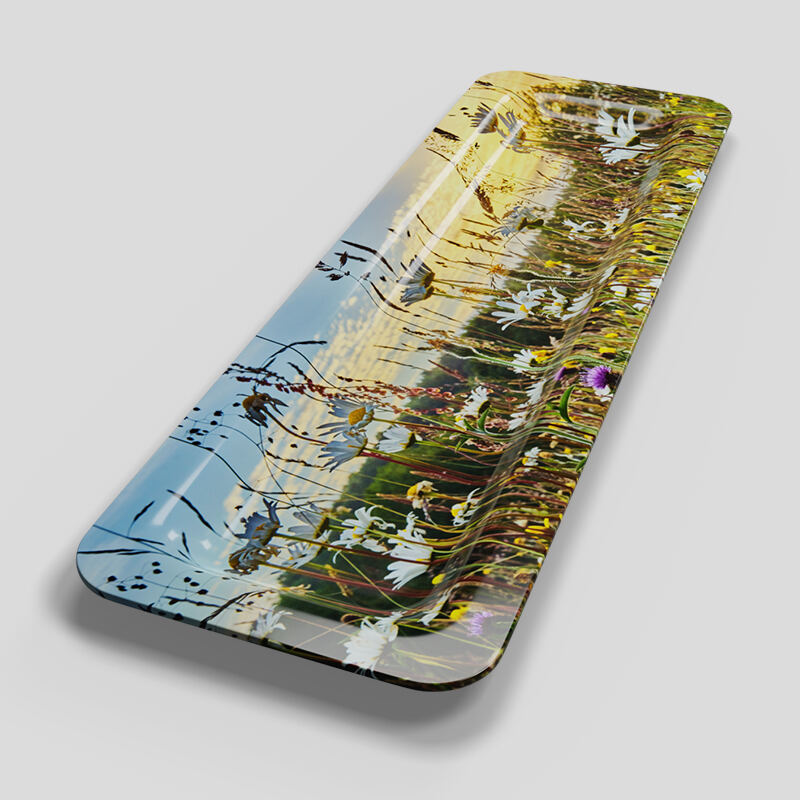 Tus bandejas personalizadas se fabrican con PVC, la mejor fibra sintética disponible en el mercado ahora mismo para crear bandejas robustas, ligeras y muy resistentes. Su superficie es lisa y la ligera curvatura en los bordes facilita los transportes de cubiertos, vasos, tazas, platos y otros utensilios de cocina. Una vez impresa la imagen, se aplica una fina capa protectora para un acabado brillante profesional que protege de arañazos, desgaste, etc.