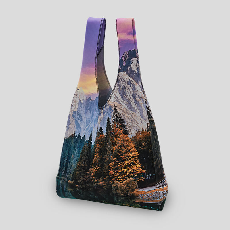 Reinventa tu compra semanal con un toque de color e imágenes agradables. Imprime tu propia bolsa de compra con un collage de fotos familiares. Puedes imprimir ambos lados para asegurarte de que la bolsa es única y personal. Hecho de una sola pieza de tela, te aseguras de que no puede desgarrarse y que no hay riesgo de rotura. Imprime una foto familiar en un lado y tu mejor amigo en el otro. Crea una bolsa para cada miembro de la familia para que sea irreemplazable con tus fotos favoritas. Las bolsas son impermeables y ello las hace extremadamente versátiles, puedes llevártela a la piscina, al gimnasio o a la playa. Un buen meneo es lo único que necesitas para quitarle el agua de encima. Espaciosa para una visita rápida a la tienda, puedes llevarla al hombro y seguir tu camino. Las asas son anchas y ayudan a distribuir el peso por tus hombros, de forma que hasta tus compras más grandes serán fáciles de transportar.