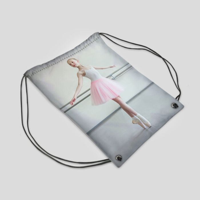 Al diseñar tu propia bolsa de baile, ten en cuenta que al cerrar el cordón, la parte superior se frunce. Esto significa que si la parte principal de tu bolsa personalizada para bailarinas queda hacia arriba, es probable que se deforme al arrugarse. Te recomendamos aprovechar al máximo el espacio de tus bolsas de ballet personalizadas y evitar colocar detalles importantes en la parte superior.
