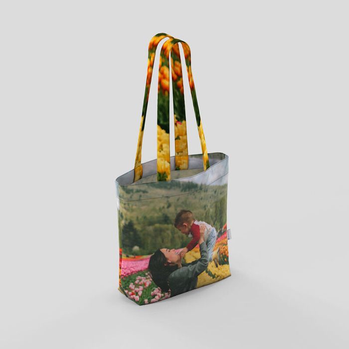 Diseña tu propia bolsa tote de lona con tus fotos, tanto para el día a día como para viajes largos o cortos. Puedes subir a la herramienta de diseño online tus mejores recuerdos de viajes, como una foto de la montaña al atardecer. Imprime la parte delantera y trasera de tu tote bag de lona, con la misma imagen o otra imagen distinta. Incluso puedes usar tu creatividad para crear un collage de fotos en nuestra herramienta de diseño online, para contar la historia de tus viajes o momentos felices. Recuerda elegir el color para las tiras de malla algodón 100% y conjuntar tu diseño. También puedes añadir una etiqueta personalizada con el logo de tu marca, un mensaje especial o cualquier otro diseño gráfico o tipográfico que quieras añadir.