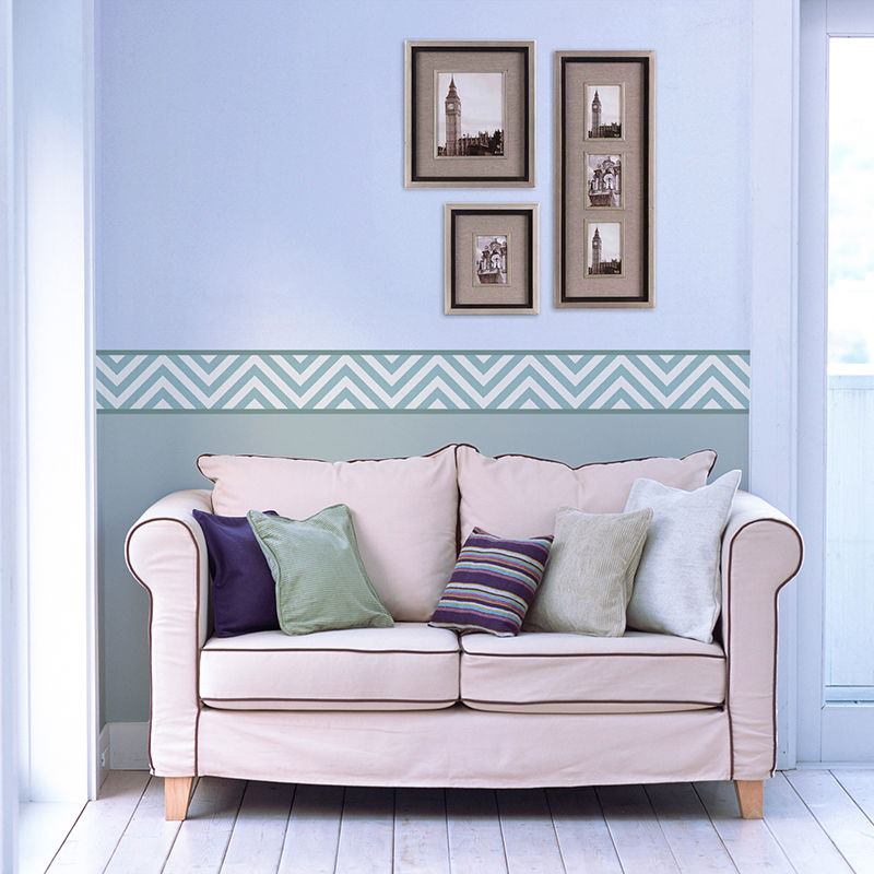 Utiliza una cinta métrica para tomar las medidas del ancho y largo de la pared que deseas decorar. Elige tantas tiras de cenefa como quieras teniendo en cuenta que las medidas son 147 x 22 cm por tira.