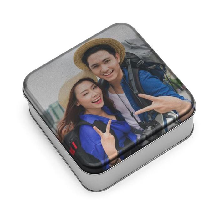 Fabricado e impreso a mano por expertos artesanos, tus cajas metálicas personalizadas son un regalo exclusivo y práctico con mucha personalidad. El metal se manufactura para producir los bordes curvos tan modernos que le otorgan a la impresión de tus diseños un efecto 3D. La tapa extraíble es increíblemente segura, para que no temas por el contenido que metas dentro. Uitilizamos una técnica de impresión especial para impregnar las tintas directamente en la superficie del metal. El grano autoténtico y natural del metal es visible a través de la impresión, creando un elegante efecto "grabado" que añade un toque más exclusivo aún a tu caja metálica cuadrada personalizada. Además, el metal con el que está fabricado esta caja metálica se puede reciclar sin problemas.