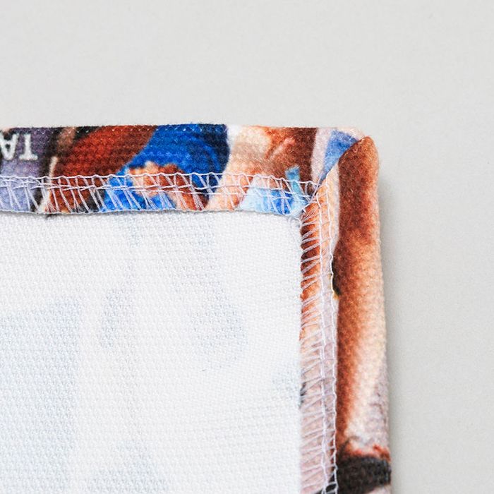 Aproximadamente media pulgada de la tela se dobla en los bordes para crear el dobladillo, así que mantén los detalles importantes del texto o de la imagen lejos del área de sangrado cuando estés diseñando tu camino de mesa personalizado.