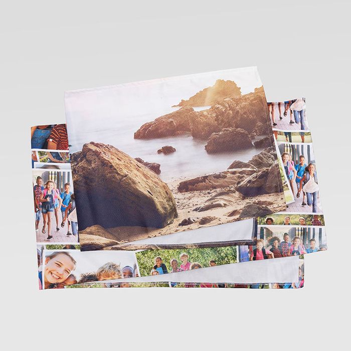 Los caminos de mesa personalizados lucen preciosos impresos con nombres y fechas para inmortalizar un momento especial de tu vida. En tu boda, haz que la mesa de champán y canapés sea la pieza central de tu boda personalizando un camino con las fotos de tu sesión de fotos de compromiso, o lleva a todos a un viaje al pasado con una cronología fotográfica de vuestra relación. La tela natural 100% lino también tiene un acabado duradero y de colores vibrantes, para que tu impresión sea tan especial como el gran día.