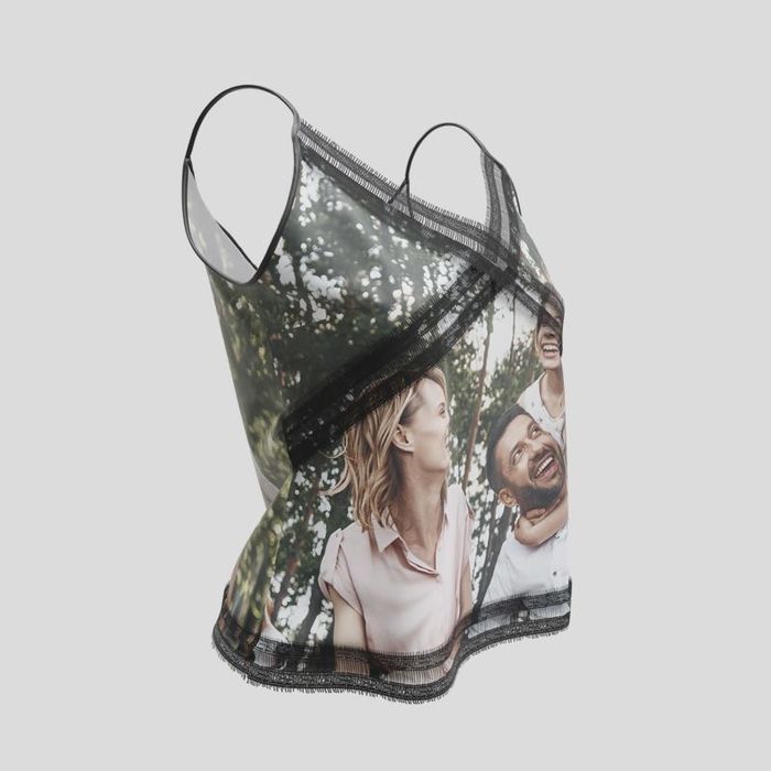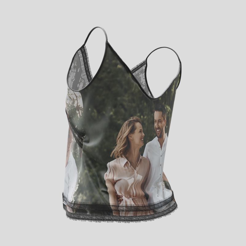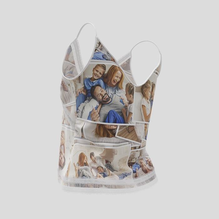 Apuesta por estampados florales, motivos art déco o incluso una foto sorpresa y transforma tu prenda en un top con foto personalizada. También puedes utilizar nuestros patrones prediseñados para crear un collage y conseguir un top encaje mujer personalizado verdaderamente único.