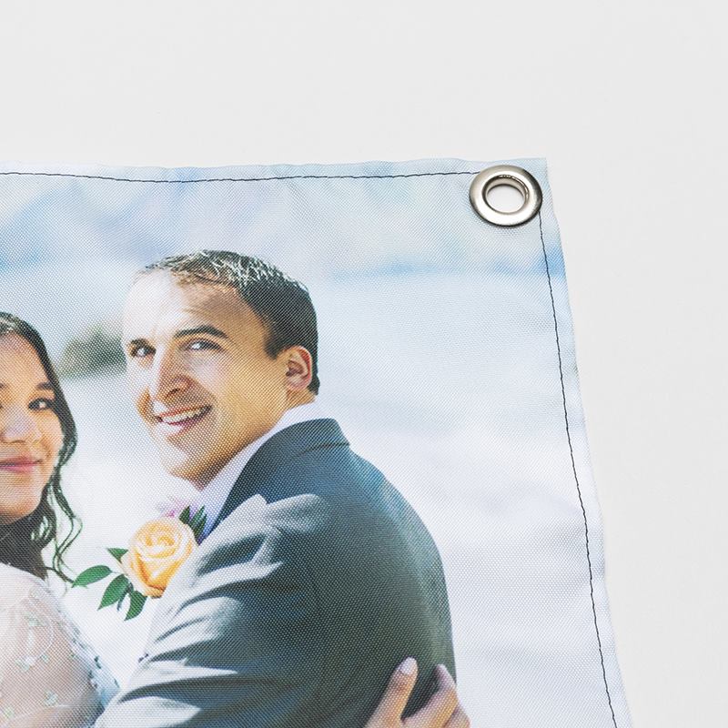 Carteles para exteriores a prueba de agua impresos a todo color. Vienen con el dobladillo cosido a mano y... Leer más