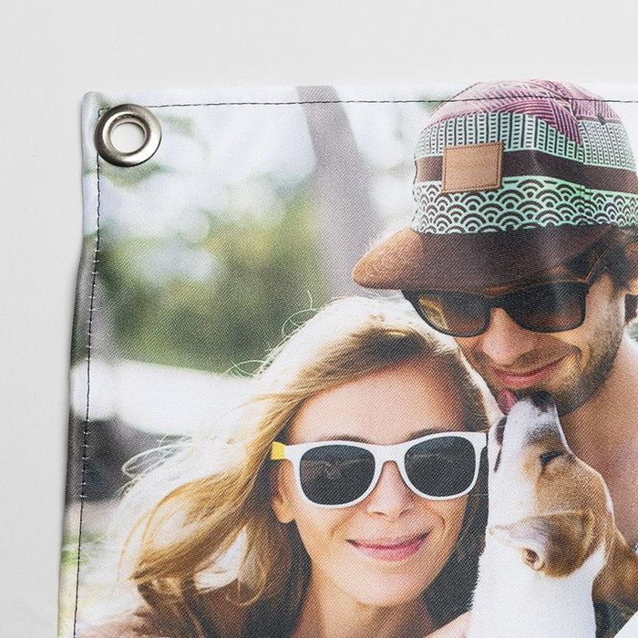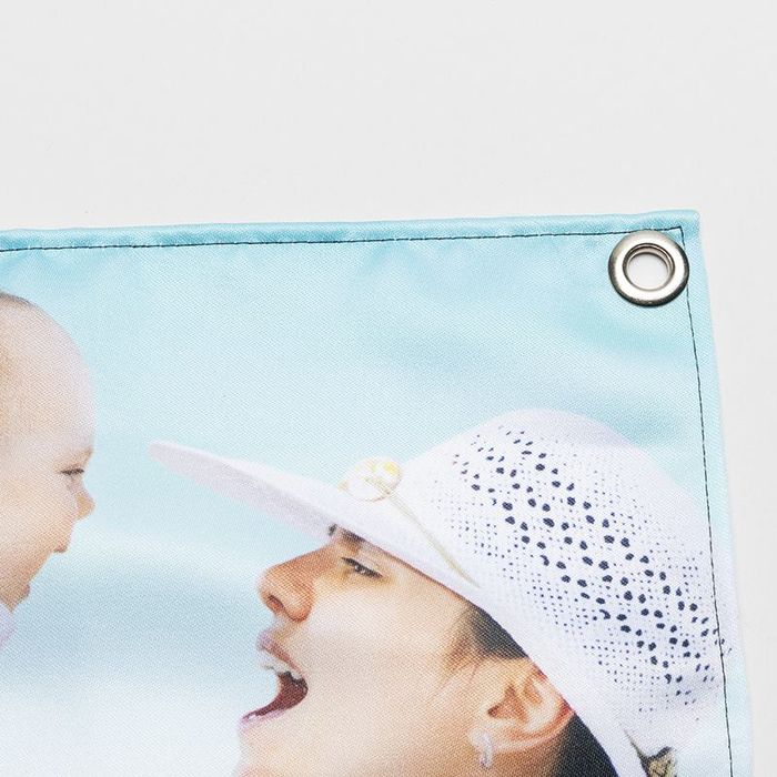 Nuestras pancartas personalizadas están fabricadas con tela de satén de alta resistencia, muy elegante y con un acabado liso y brillante. Además están cosidas a mano con mucho cuidado en un proceso artesanal que, combinado con la tecnología de impresión y materiales de alta calidad, ofrece unos excelentes resultados que se reflejan en la durabilidad del material y la impresión que perduran en el tiempo año tras año. En las esquinas de las pancartas se insertan unas arandelas de metal reforzado para colgarlas fácilmente y sin correr el riesgo de que se rasguen (la cantidad de arandelas depende del tamaño de la pancarta).