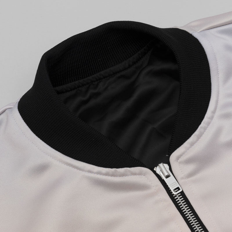 Selecciona entre 4 combinaciones de tejido y forro para adaptar tu bomber a cada estación. Todas llevan cremallera metálica plateada italiana y te permiten elegir el color de cuello, puños y cintura: negro, blanco o gris.