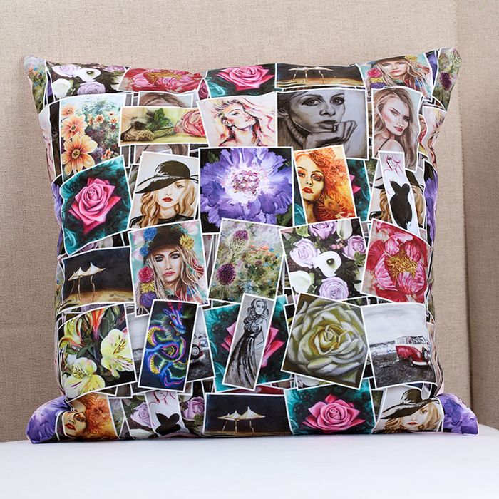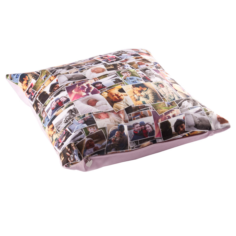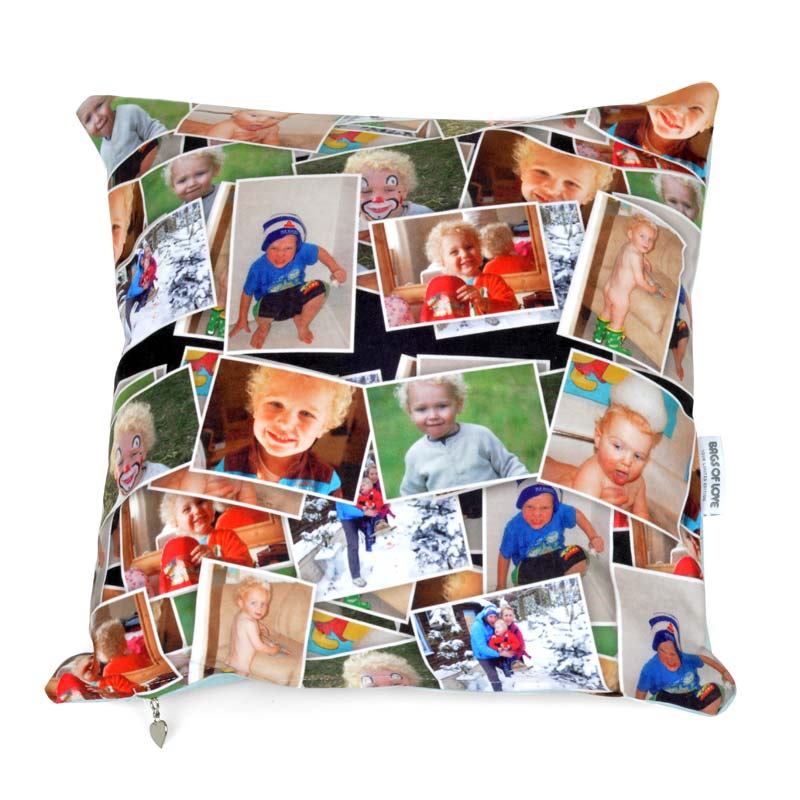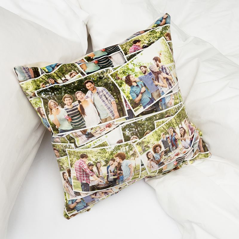 Personaliza tus cojines con collages que incluyan tus fotos, mensajes o estampados favoritos