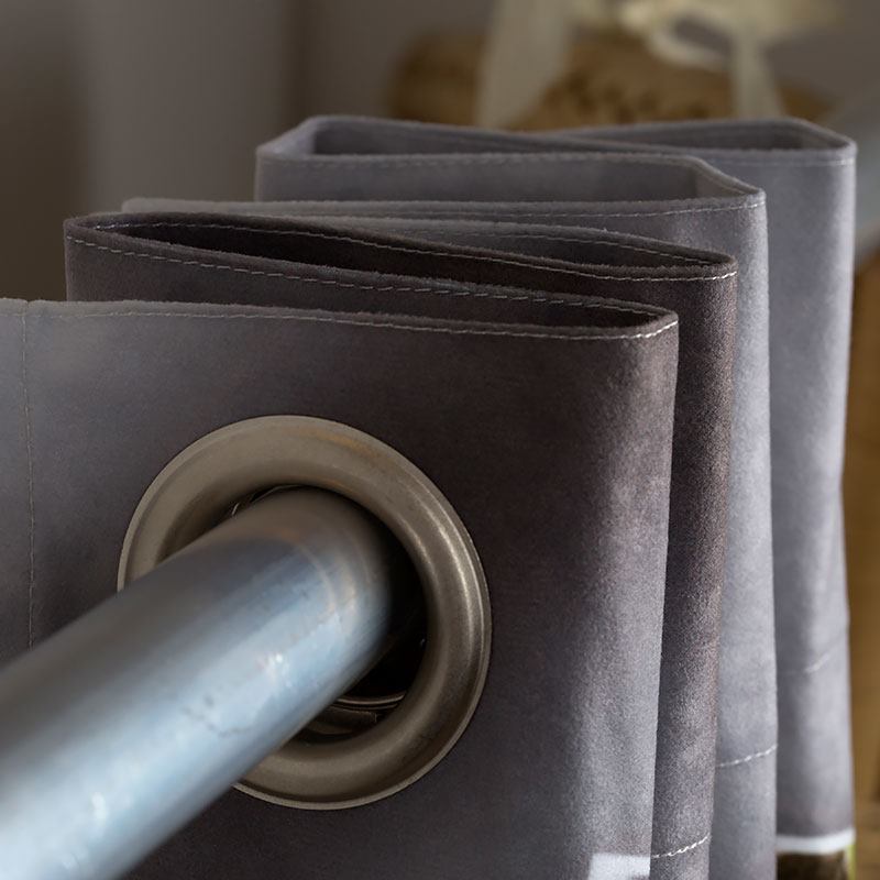 Te ofrecemos tres maneras de colgar tus cortinas: con un dobladillo (1), con una cinta de 7,5 cm (2) u ojales (3). Puedes elegir ojales de 40 mm o 65 mm de diámetro interior en el color que más te guste: plateado o negro.