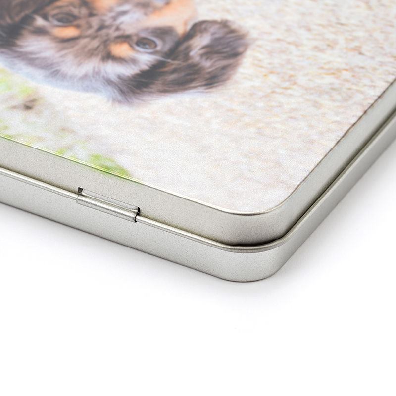 Aunque se trata de un metal resistente al óxido y la corrosión, tu estuche debe guardarse en un lugar seco lejos de fuentes de calor directo como estufas y calentadores que podrían dañar la impresión y causar quemaduras en la superficie. Este estuche de metal personalizado se puede reciclar.