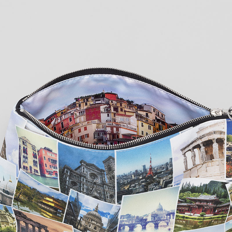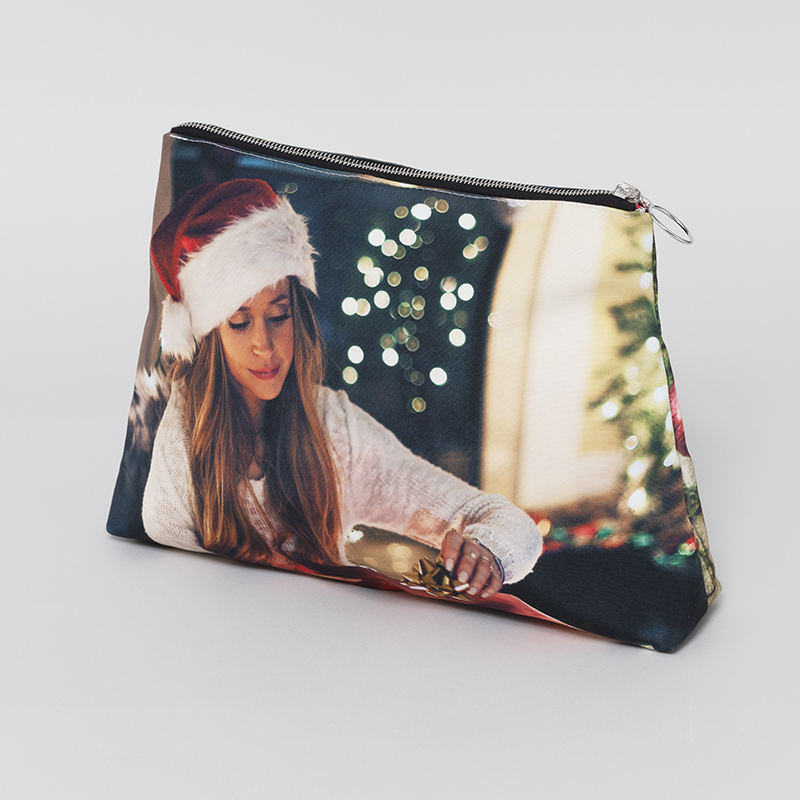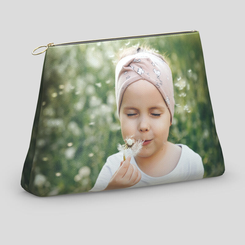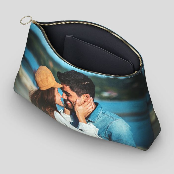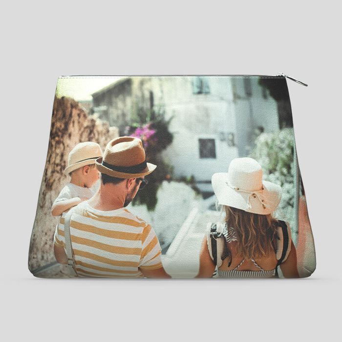 Diseña el exterior de dos caras de tu bolso de mano personalizado, y si quieres, también el suave forro de satén interior. Cada lado de tu bolso cuenta con la superficie rectangular perfecta para tus fotos. También puedes añadir tus iniciales en sólo uno de los lados, o en el interior. Igualmente, puedes dejar el interior sin diseñar para disfrutar del elegante color negro del satén.