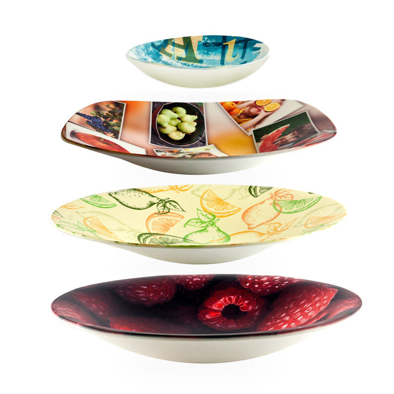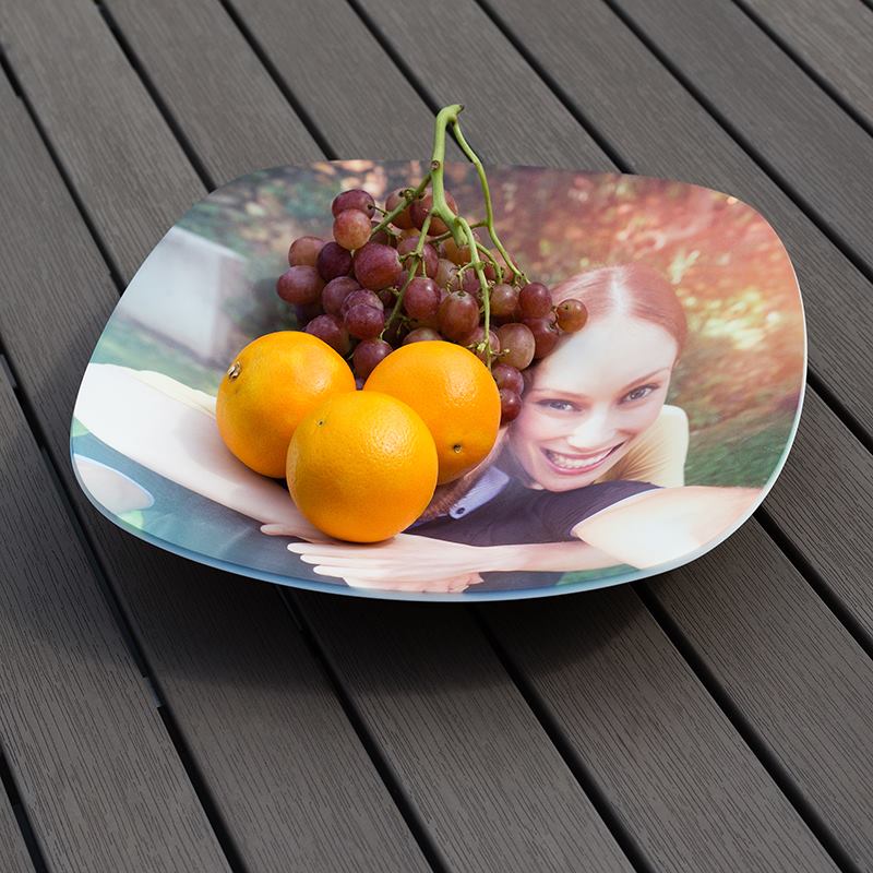Cada frutero decorativo personalizado se moldea en resistente resina Stonemax™ y se imprime a mano mediante sublimación. Este proceso sella la tinta dentro del material para lograr colores vivos y duraderos. Al ser un trabajo artesanal, es normal que el diseño sobrepase ligeramente el borde, convirtiendo cada pieza en única.