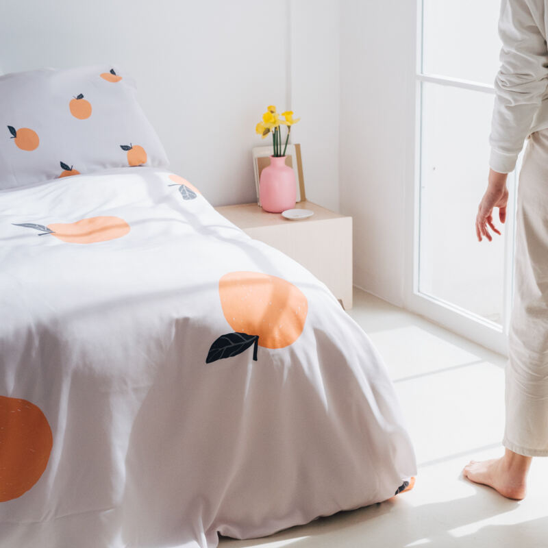 Después de la impresión sobre toda la superficie de tu funda nórdica de polialgodón o satén de algodón -según tu elección-, las dos caras se cosen y se acaban a mano por nuestros sastres, cuidando el proceso hasta el más mínimo detalle. Por eso puedes elegir entre dos telas, tres tipos de costuras para las fundas nórdicas de tamaño más grande y dos colores para los hilos: blanco o negro.