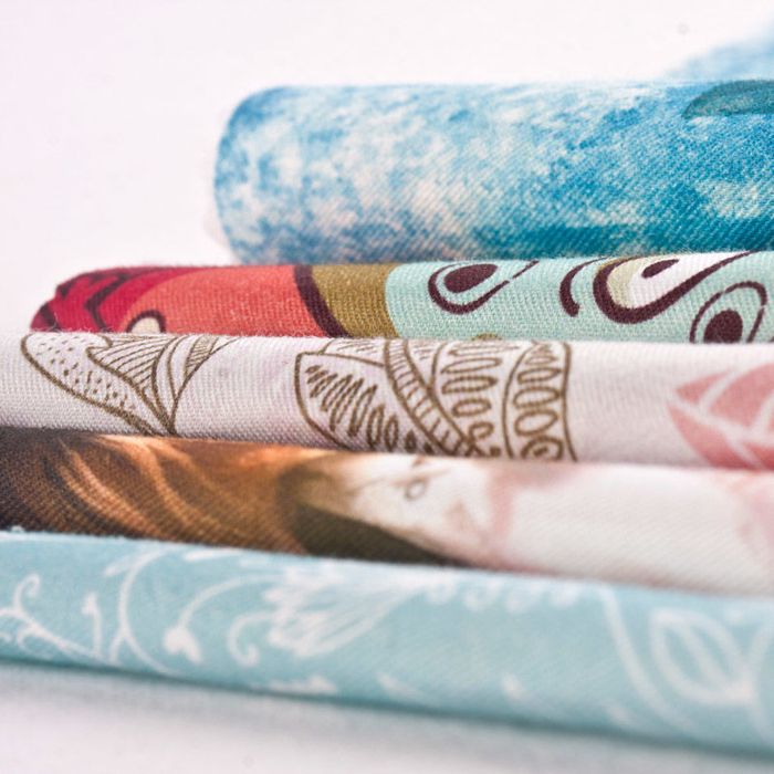 Aunque es raro, a veces puede pasar que de una impresión a otra exista alguna pequeña diferencia en los pigmentos. Esto es normal, aunque trabajamos de continuo para mejorar nuestros perfiles de color. Sin embargo, es bastante difícil que exista una diferencia llamativa (como pasar de naranja a rojo). Las diferencias en los pigmentos se pueden dar si imprimes el mismo diseño en distintos tejidos, dependiendo de la textura y granulados. Las fibras naturales tienden a mostrar colores más apagados que las alternativas sintéticas. Además de las diferencias estructurales entre los tejidos, el método de impresión se altera ligeramente cuando se trabaja con tejidos naturales.