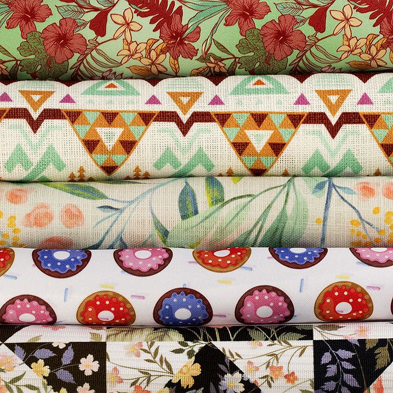 Para las telas sintéticas utilizamos la impresión por sublimación, que fusiona la tinta con las fibras de la tela. El resultado son colores vibrantes, contrastados y vivos, pero cada impresión será distinta dependiendo de la composición del tejido.