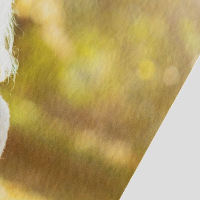 Lejos de las clásicas láminas impresas en papel fino, nosotros ofrecemos papel profesional de alta calidad de 189 gr/m2 o 310 gr/m2, según el acabado liso o texturizado que hayas elegido. La calidad del papel y la calidad de la tinta aseguran que los colores de tu foto durarán cientos de años si la cuidas bien y la mantienes a buen recaudo.
