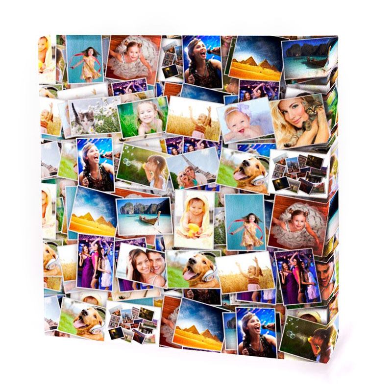 La tela de lona de 300 o 500 g/m2 que usamos es excelente para imprimir imágenes en alta definición y crear tu lienzo con collage personalizado. Podrás ver hasta los detalles más pequeños que aparecen en el lienzo collage con muchas fotos. La tela también tiene un acabado mate que evita el reflejo de la luz, mostrando a su vez unos colores vivos y contrastados. Se trata de un tratamiento exclusivo, profesional y duradero ¡Por eso ofrecemos garantía para toda la vida!
