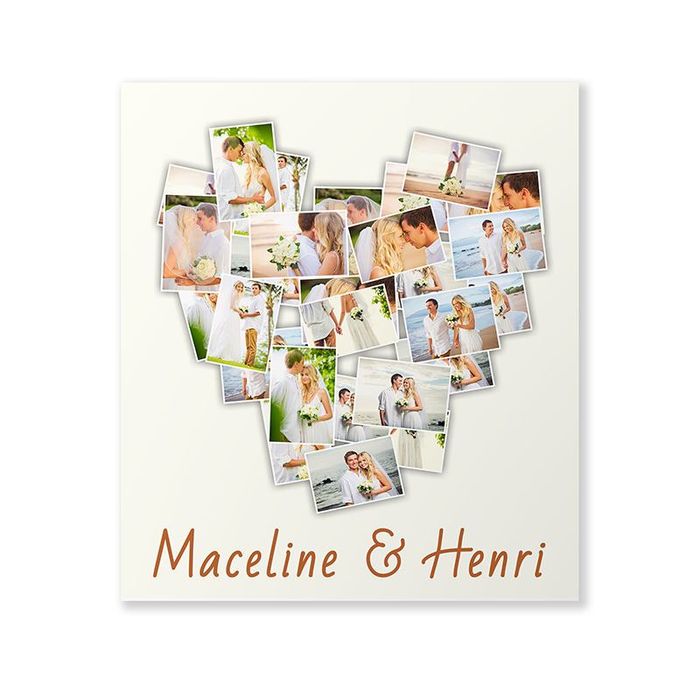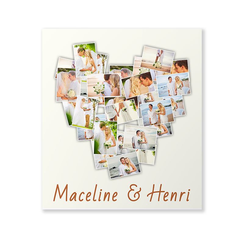 ¡Sube tus fotos, imágenes o diseños y comienza a personalizar directamente desde nuestra página! Utiliza nuestra herramienta de diseño online para ver todas las posibilidades. Por supuesto, también puedes elegir la forma de tu lienzo collage personalizado. Una vez hayas subido tus fotos, haz clic en "Crear fotomontaje" y selecciona entre nuestras múltiples opciones de diseño:
