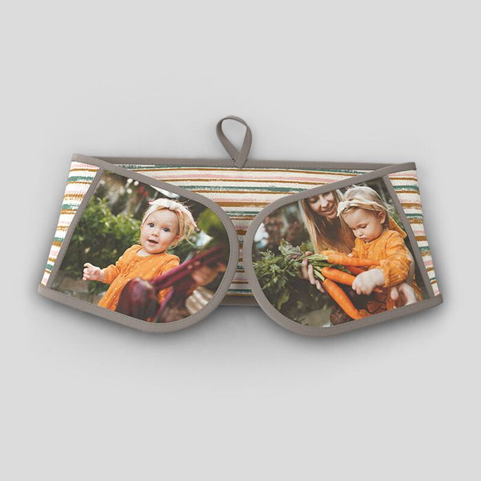 Si todavía usas un paño para sacar tus creaciones del horno, ¡descubre las manoplas dobles personalizadas!