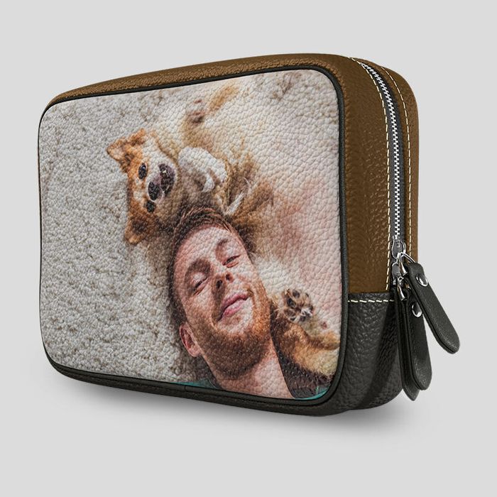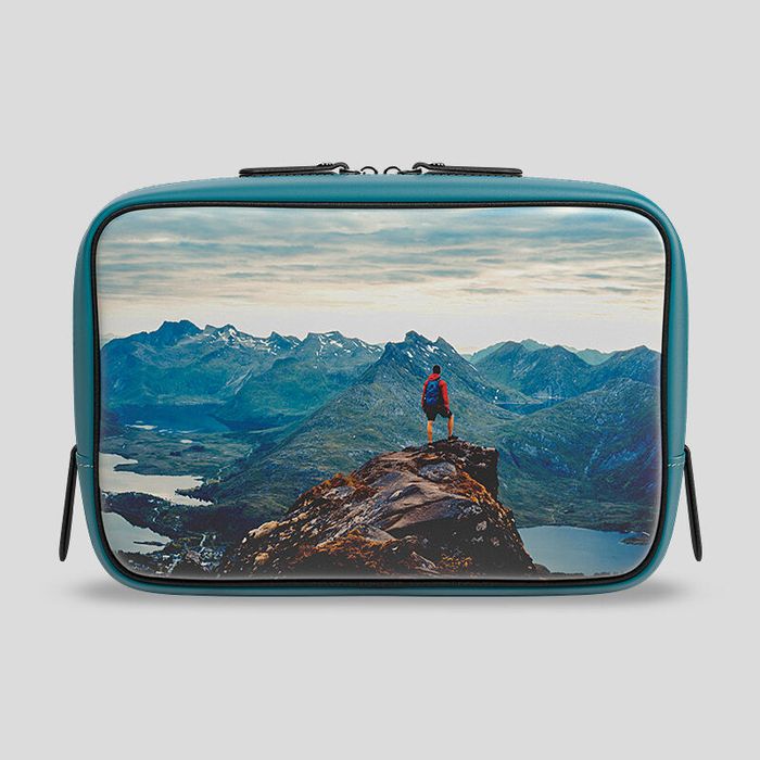 Para crear tu neceser compacto de viaje, cuentas con cinco áreas para diseñar: la parte delantera, la parte trasera, la base y los dos paneles estrechos a los lados. Los paneles delanteros y traseros crean un lienzo perfecto para cualquier foto o imagen horizontal. Los otros tres paneles son largos y estrechos, por lo que recomendamos utilizar colores o patrones que complementen tu diseño. Puedes también añadir texto o incluso el careto de alguien con nuestra herramienta de diseño online. ¡No te cortes al explorar y crea un neceser compacto de viaje personalizado en exclusiva por tu creatividad!