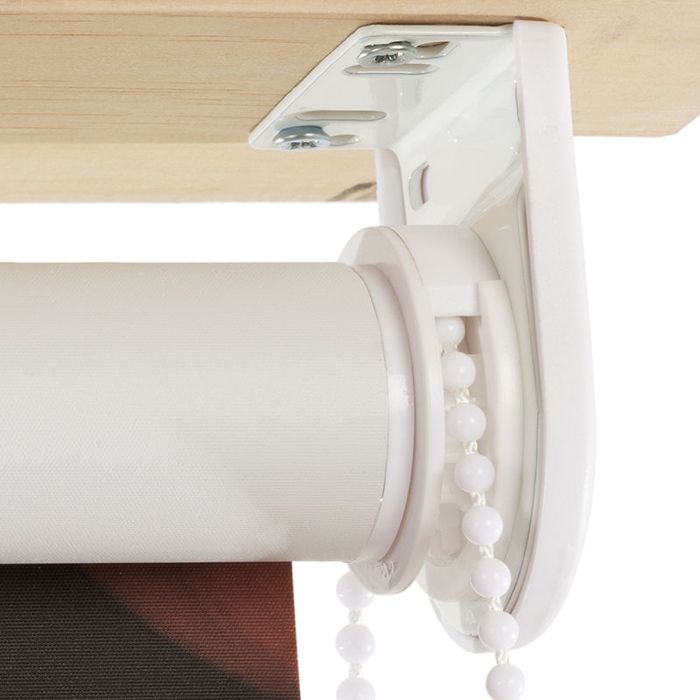 La persiana va dentro de la caja de la ventana. Necesitamos conocer las dimensiones exactas. Restamos 3,2 cm del ancho de la tela para los soportes. La persiana terminada, incluyendo los soportes, tendrá el mismo ancho seleccionado.