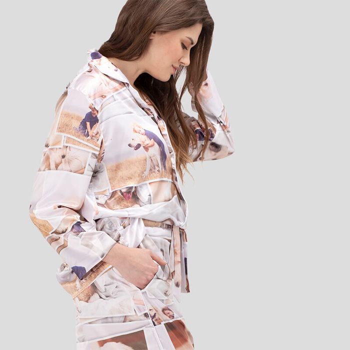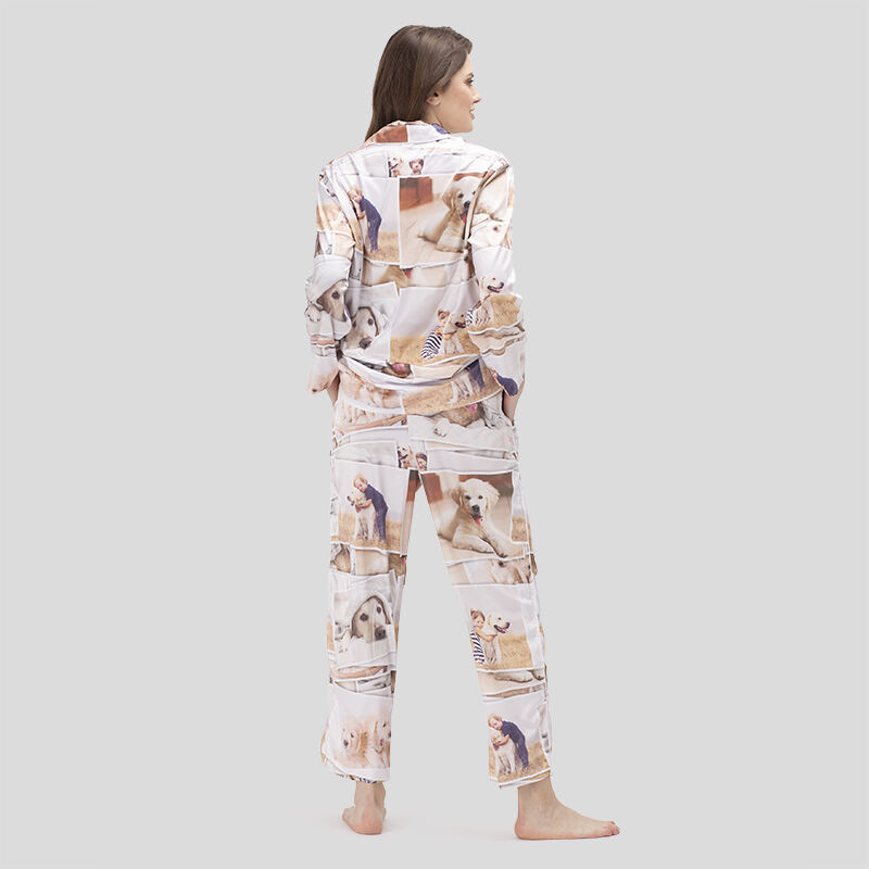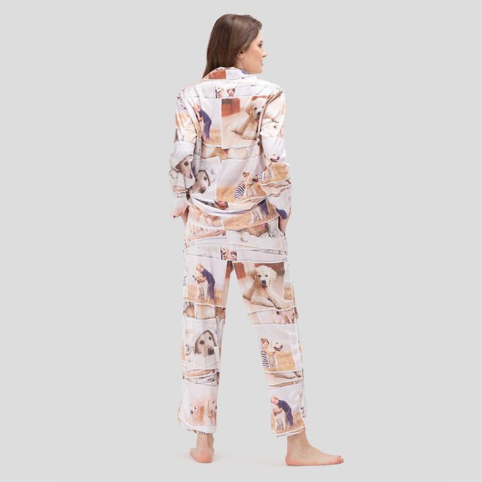 Estos pijamas brillantes y a la última son geniales para salir de la cama. Son un uniforme de trabajo en casa sin problema alguno. Ponte nuestra camiseta de pijama de lujo personalizada para que puedas lucirlo al dormir o en una fiesta a la hora de la cena. Para ser honestas, la camiseta ligeramente grande es una elección para toda la vida. Es una suerte tener un conjunto precioso que sirve tanto para dormir como para las fiestas nocturnas. Con unos botones con acabado de perla en blanco y negro, y elegantes mangas largas, la camiseta de este Pijama de Lujo para Mujer Personalizado es la mejor manera para lucirse y estar cómoda en un conjunto con mucho estilo. Además, puedes diseñar hasta 6 secciones de las prendas con tus fotos más modernas y el texto que desees para un acabado personalizado. De forma que tanto si estás buscando un conjunto casero o para cuando tengas tiempo de calidad para ti misma, esta elegante camiseta, pantalones largos y pantalones cortos de pijama están aquí para pasar un tiempo maravilloso todos los días.