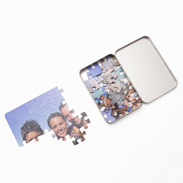 El material de plástico empleado es inastillable. Nuestros rompecabezas con fotos se realizan a través de un proceso específico donde las tintas se fusionan con su superficie y permite que tus diseños permanezcan, no se despeguen o desvanezcan con el paso del tiempo. Todas las piezas del rompecabezas se cortan con precisión para que encajen perfectamente. La imagen impresa en la superficie del puzzle será la misma que queda impresa en la tapa de la caja metálica que se incluye con el producto.