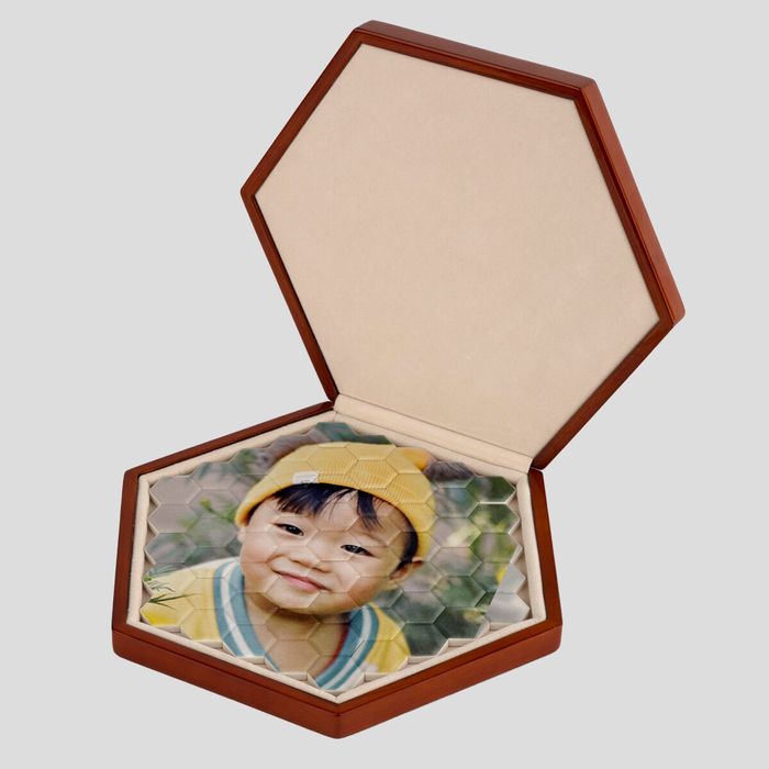 Cada rompecabezas de cerámica hexagonal se elabora prestando atención a los detalles y a la calidad. Mediante técnicas de impresión avanzadas, transferimos su diseño a baldosas de cerámica duraderas, lo que garantiza colores vibrantes y detalles nítidos. Luego, las baldosas se ensamblan cuidadosamente para formar un rompecabezas cohesivo, que se guarda en un estuche de madera de nogal de primera calidad forrado con terciopelo suave para proteger las piezas y agregar un elemento de lujo. Este proceso garantiza un producto hermoso y duradero que es tan práctico como elegante.