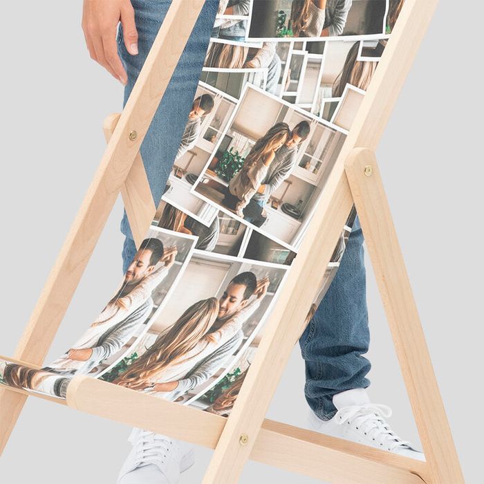 Utiliza tus fotos, imágenes o texto para crear sillas de playa impresas bajo demanda.
