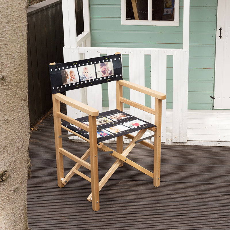 Personaliza las tres zonas imprimibles como prefieras. Nos encanta usar la parte exterior del respaldo para añadir un nombre o frase divertida, y reservar el asiento y el interior para fotos o patrones llamativos. Tu silla de picnic con nombre dejará claro de quién es.
