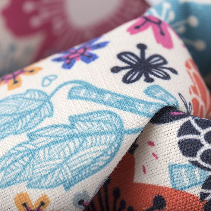Aunque es raro, a veces puede pasar que de una impresión a otra exista alguna pequeña diferencia en los pigmentos. Esto es normal, aunque trabajamos de continuo para mejorar nuestros perfiles de color. Sin embargo, es bastante difícil que exista una diferencia llamativa (como pasar de naranja a rojo). Las diferencias en los pigmentos se pueden dar si imprimes el mismo diseño en distintos tejidos, dependiendo de la textura y granulados. Las fibras naturales tienden a mostrar colores más apagados que las alternativas sintéticas. Además de las diferencias estructurales entre los tejidos, el método de impresión se altera ligeramente cuando se trabaja con tejidos naturales.