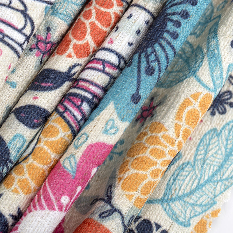 Esto garantiza una impresión a todo color y duradera de su diseño personalizado, adherida a la tela. Puede recibir su tela de lino para tapicería tal como sale de la imprenta o cortarla en la línea, eliminando todos los bordes blancos. Si lo prefiere, puede hacer un dobladillo overlock en su tela de lino, con hilo blanco o negro a elegir.