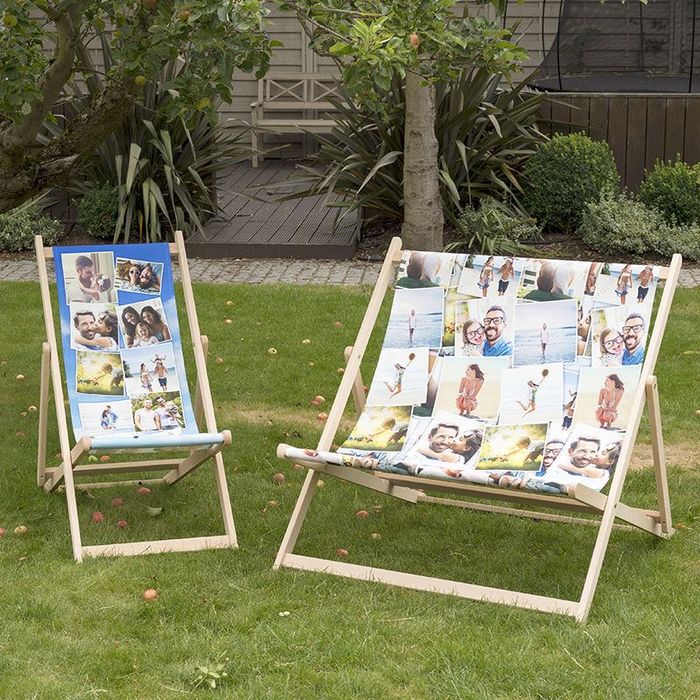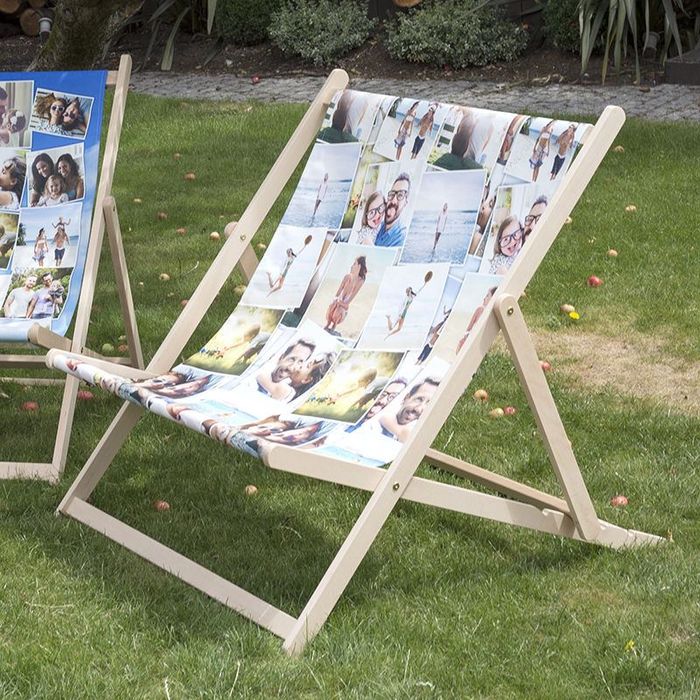 Si quieres que aparezca una sola foto en tu silla, ten en cuenta que el largo y el ancho de la foto deben ajustarse al tamaño de la tela de la tumbona, que es más larga que ancha. Si no estás aseguro de cómo va a quedar la foto, utiliza nuestro servicio de control de imagen gratis y nuestros diseñadores te aconsejarán. Incluso puedes crear collages con muchas fotos con nuestra herramienta de diseño online para no tener que preocuparte de cuadrar las fotos.