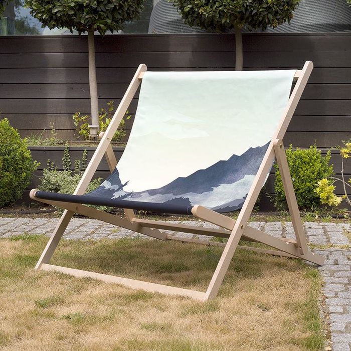 Su tela de lona de 500 gr/m2 para mejor resistencia y comodidad. Se cose y acaba a mano tras la impresión, para después ensamblarse en la estructura de sólida madera de haya. Un producto robusto y duradero indicado para el uso diario y con una resistencia de hasta 150 kg (una o dos personas).