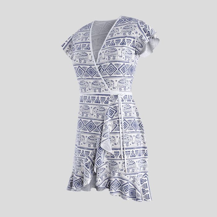 Para un estilo femenino, romántico y juvenil, un vestido cruzado con volantes personalizado con tus mejores fotos