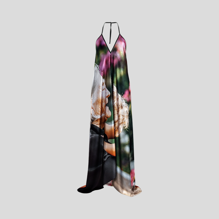 Mide alrededor de la parte más ancha (zona de las caderas)Tu vestido sin espalda se confecciona artesanalmente en nuestro taller con la tela que elijas: satén de seda natural o seda sintética sensation. La seda natural presenta una caída vaporosa, mientras que la opción sintética ofrece un ligero punto elástico. Seguimos tu selección de cola y color de costuras antes de imprimir tu diseño a todo color mediante tecnologías de tinta reactiva o sublimación, según el tejido.