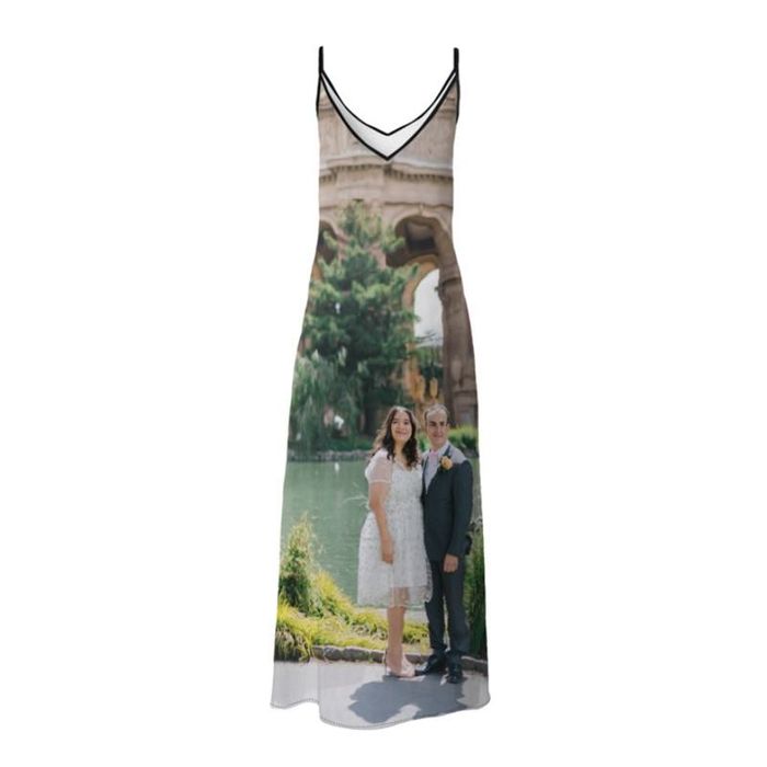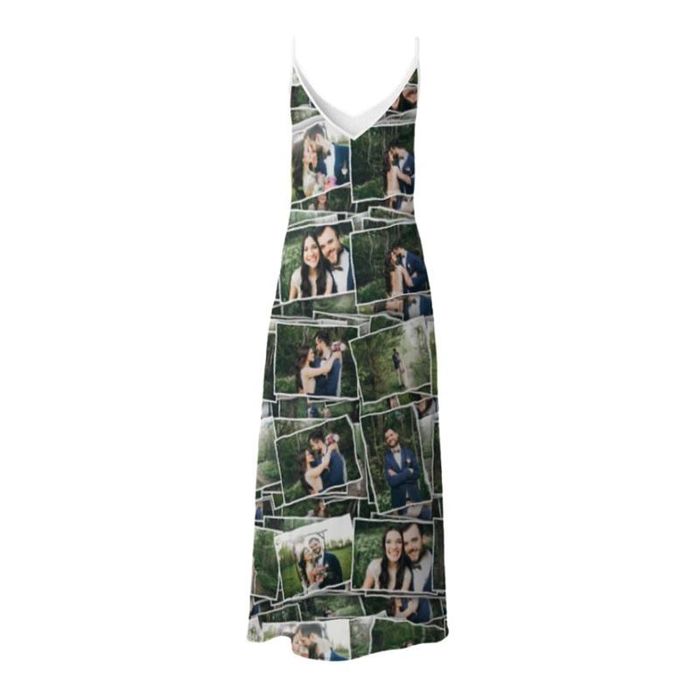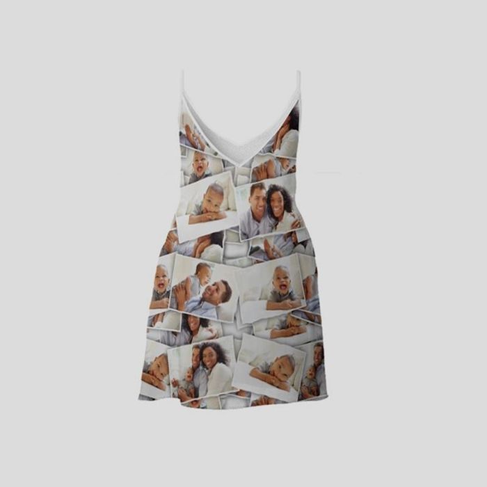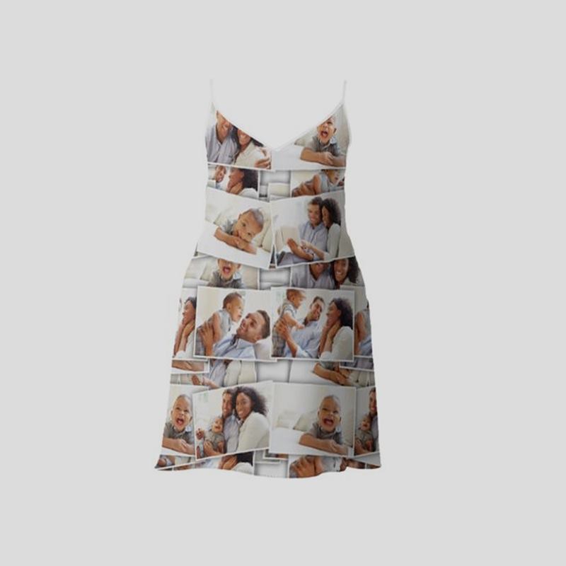 Sube tus fotos, imágenes o diseños desde tu ordenador o directamente desde tus redes sociales como Facebook o Instagram ¡y comienza a personalizar tu vestido de tirantes! También puedes añadir texto como iniciales o fechas, e incluso hacer un collage, donde no importa tanto que lo cuadres todo perfecto. Por otro lado, puedes crear un patrón con una pequeña foto repetida, un logo ¡o incluso tu propia cara! Utiliza nuestra herramienta de diseño online para ver las infinitas posibilidades (botón "Personalizar"). Según prefieras el vestido largo o corto, una tela u otra, puedes crear cientos de diseños distintos.