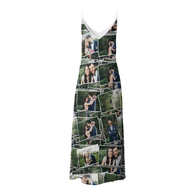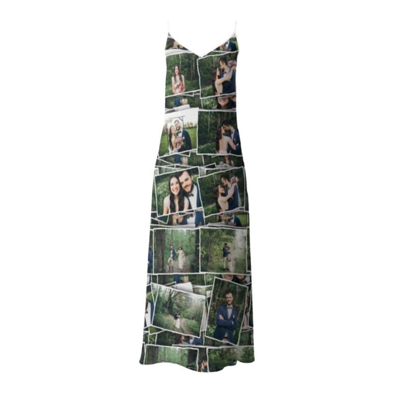 Mide alrededor de la parte más ancha (zona de las caderas)Nuestros técnicos expertos imprimen tus fotos, collage o diseño directamente sobre la tela de tu elección. Así nos aseguramos de que la impresión ocupe la tela de lado a lado, sin dejar ningún hueco en blanco. Utilizamos técnicas digitales de impresión de última generación para asegurarnos de que tus fotos resistan el paso del tiempo. Este método fusiona tus diseños con las fibras del tejido, así la impresión es tan duradera como tu vestido de tirantes. Una vez impresa, la tela se corta según el tamaño que hayas elegido siguiendo el patrón de vestido largo o corto. Nuestro equipo de modistas se encargan de confeccionar tu vestido, añadir los detalles, dobladillos, etc.